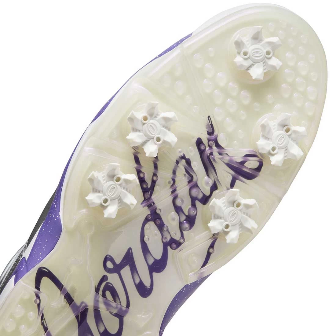 - Spikes on the outsole add grip and stability for the course.